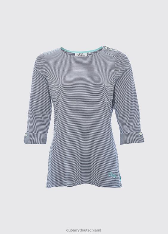 Dubarry Portmagee Mini-Streifen, U-Ausschnitt-Top mit funktionellem Knopfdetail an Schulter und Manschetten sowie langen Ärmeln aus weichem, luxuriösem Stoff.
